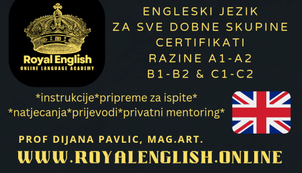 Profesorica engleskog jezika, Akademska umjetnica - vodi instrukcije iz engleskog jezika za sve dobne skupine. Online ili ucenje uzivo. 20 godina iskustva, Britansko gradanstvo, izvorni govornik engleskog jezika. Po struci sam pedagog, volim rad s djecom i studentima - ako ste negdje zapeli s engleskim jezikom, javite mi se. Razine od pocetnih A1-A2, srednjih B1-B2 te naprednih i strucne razine C1-C2. Prvi sat FREE😊